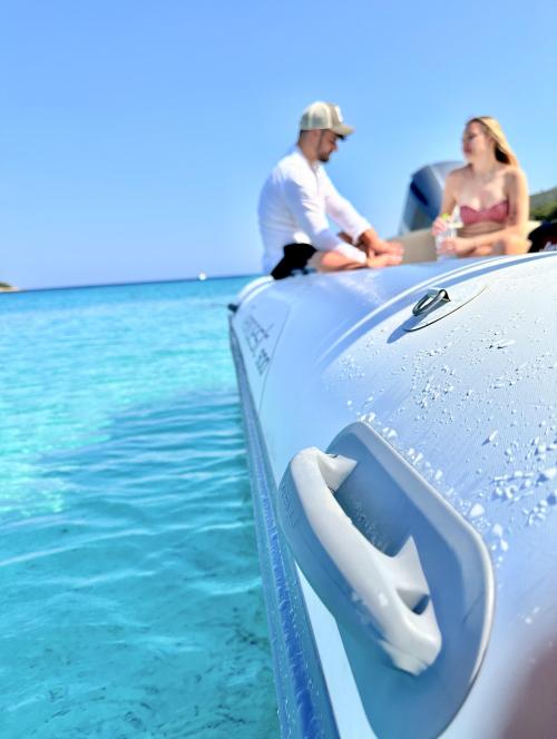 A bordo di un maxi gommone di 9 metri e mezzo comodo e confortevole visiterai alcune delle calette più belle e incontaminate della Sardegna.